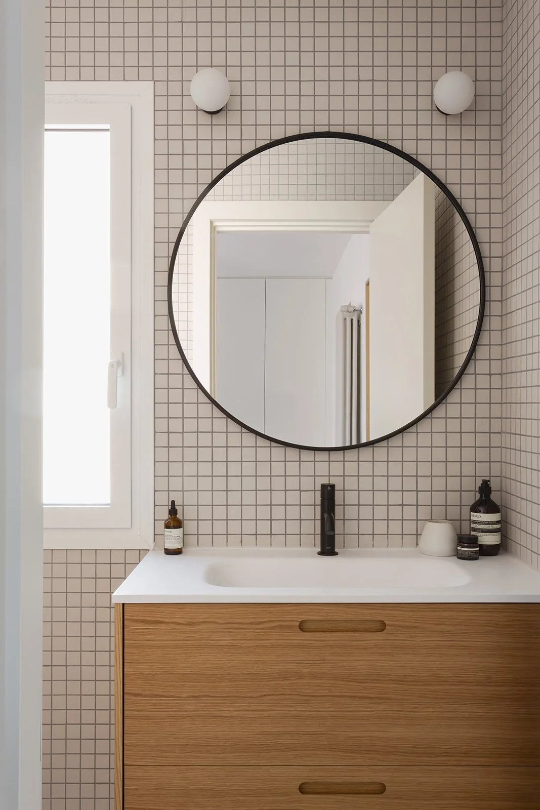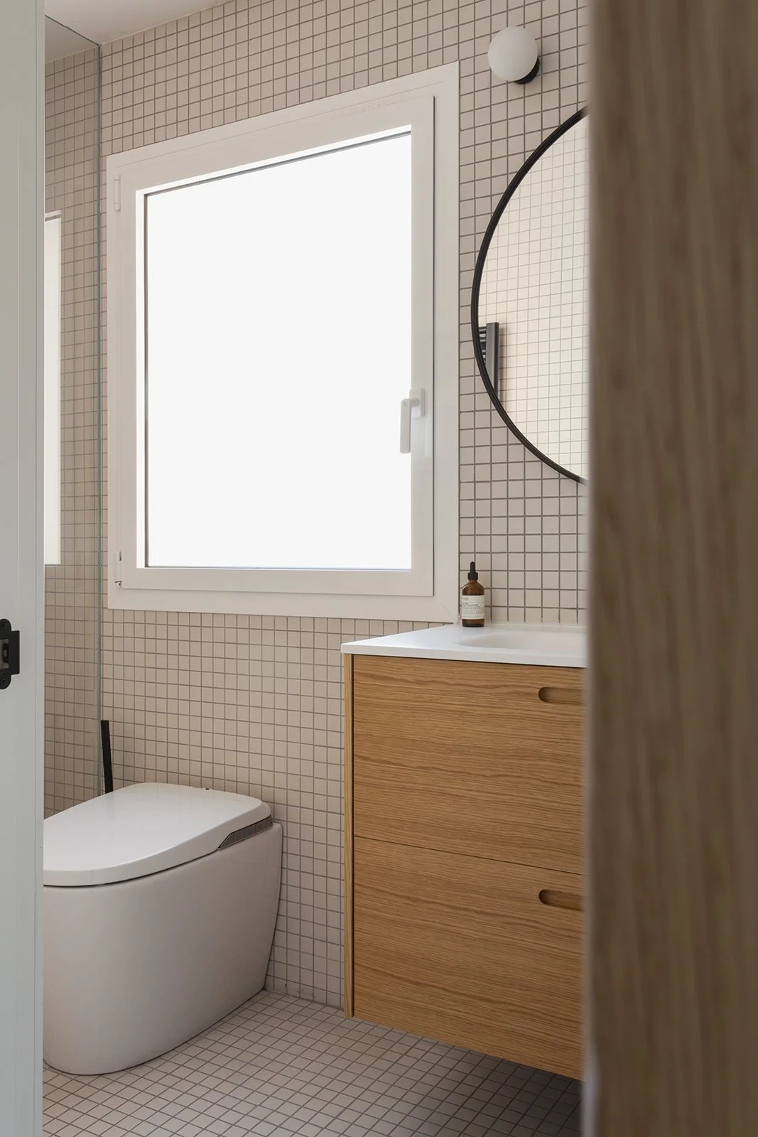 Para el baño, optamos por un azulejo mate en formato cuadrado.