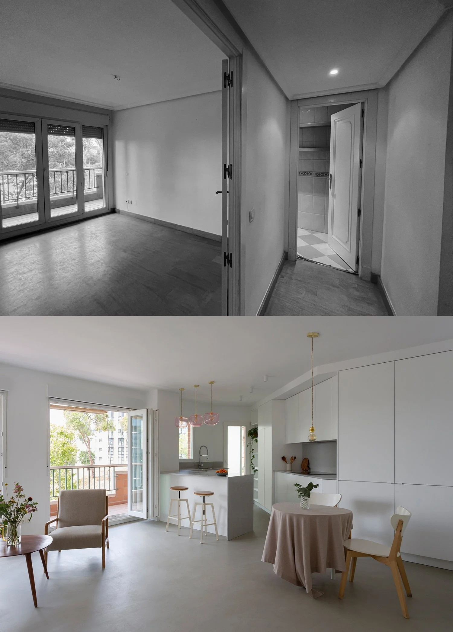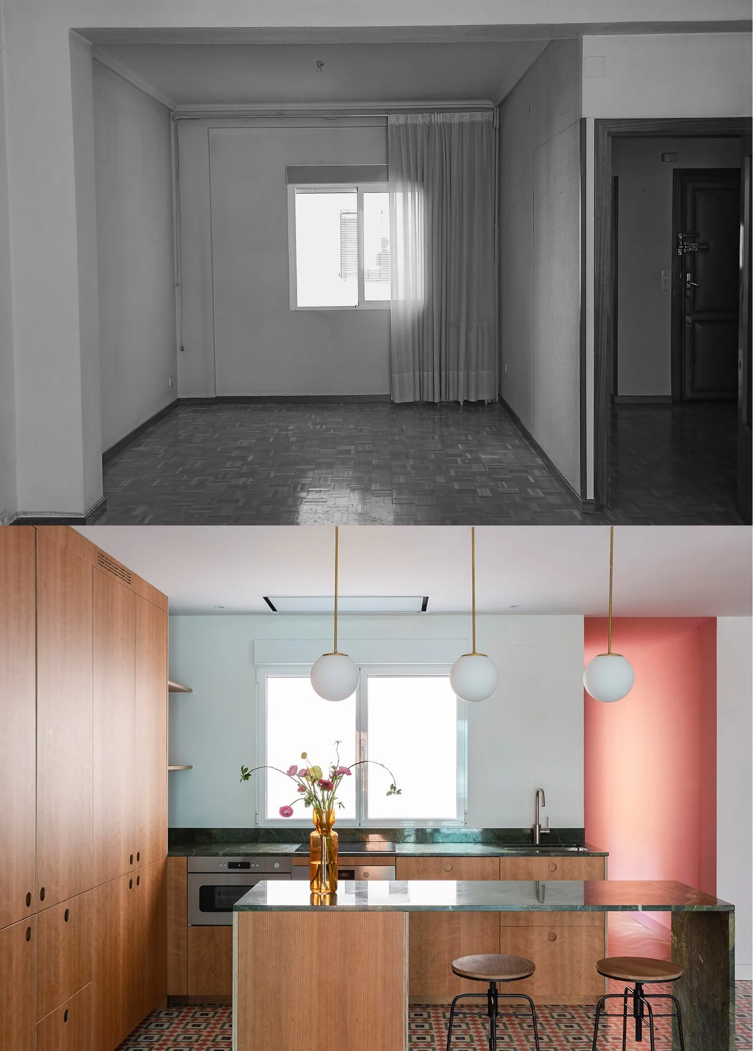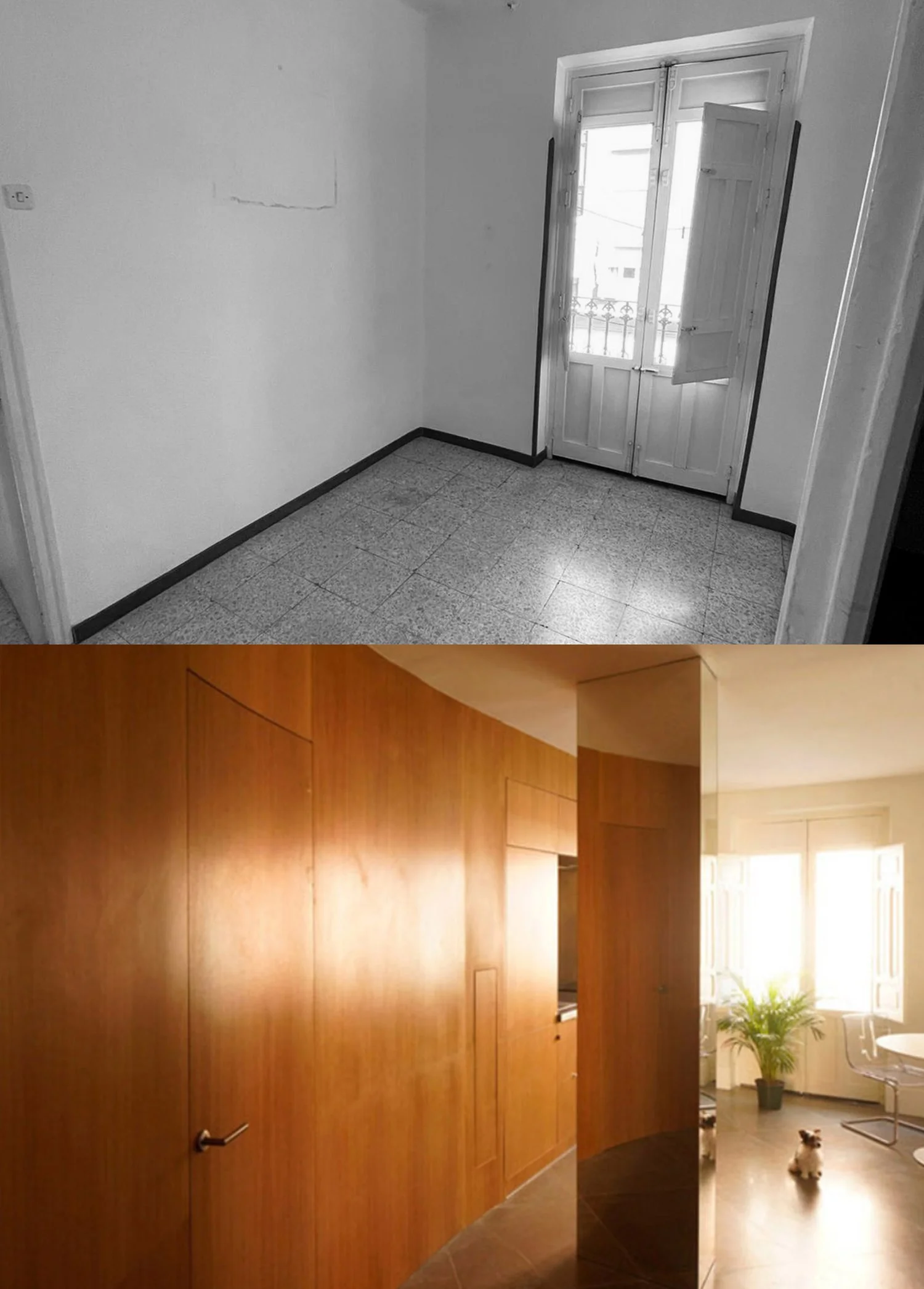 Una vivienda situada en Retiro de 100 m2, 3 habitaciones y tabiques por todas partes, transformada en un amplio espacio abierto para disfrutar.